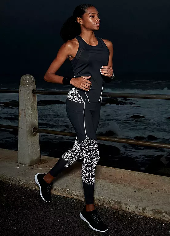 Active by LASCANA’s Reflective Print Racerback Running Top is the perfect way to make your running routine sporty, cool, and stylish. The lightweight fabric is designed with mesh inserts to keep you cool and comfortable during your workouts. Plus, it’s reflective print design keeps you visible when you’re out on the roads. Get ready to make a statement while you run! Reflective print. Crew neck.