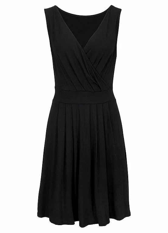 Feminine and flattering pretty beach dress. Styled with a low-cut v-neck with pleats and overlapping panels for an on-trend wrap effect with wide straps. Also there’s a waist yoke and a wide cut skirt for a stunning look. Length approx. 90 cm (35½ in).