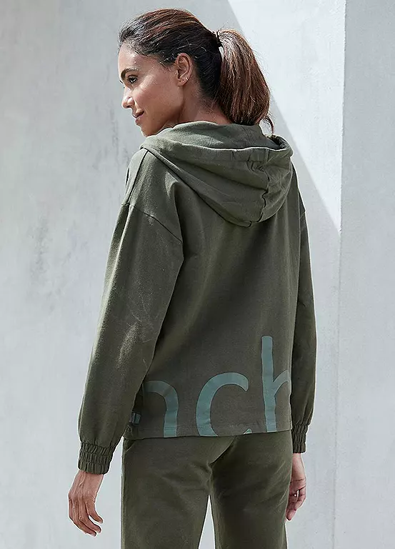 A fashionable hoodie that is wonderfully soft with an elastic cotton quality. Featuring a hood with drawstring, ruffled sleeve cuffs and quilting at the waist that ensures a good fit. Designed with a large but subtle tone-on-tone logo. Sweatshirt with zip and hood.