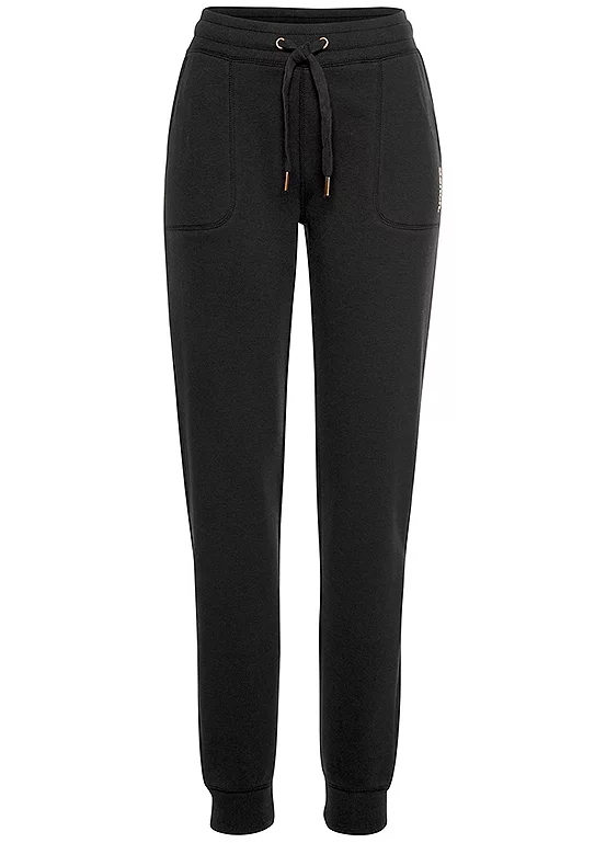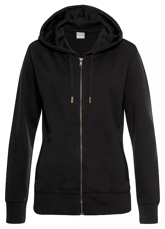 A cosy leisure suit consisting of a hooded sweat jacket with pockets and matching sweat pants with elastic cuffs for plenty of comfort. In a soft cotton blend, complete with logo detail in a stylish metallic effect. Pants with elastic cuffs.