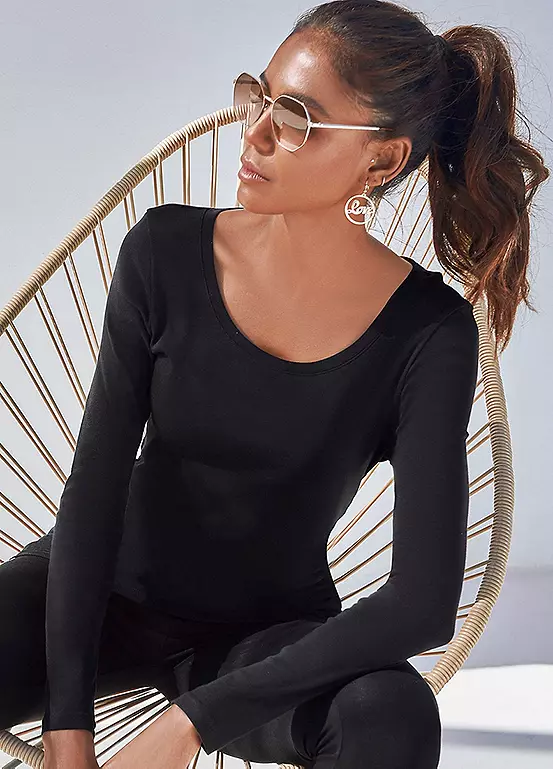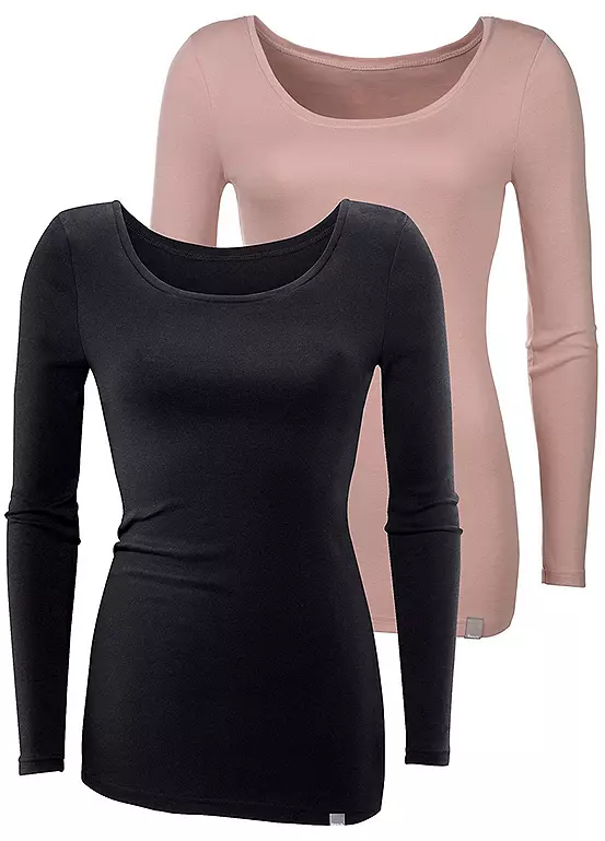 An everyday essential, these high quality long sleeve tops are made of soft and comfortable, finely ribbed fabric. They feature a rounded neckline and a small, woven logo on the hem.