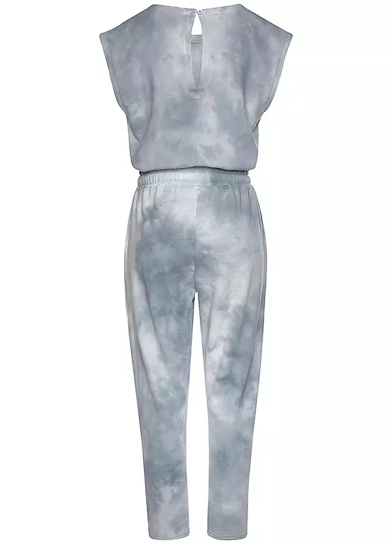 Loungewear jumpsuit in a stunning tie-dye pattern. The casual cut as well as the waist drawstring together with the cool batik pattern is reminiscent of trendy retro styles. The soft sweat fabric of the one-piece flatters your figure and ensures optimal freedom of movement and comfort. Loungewear jumpsuit with a tie-dye pattern. Drawstring waist. Soft sweat fabric.