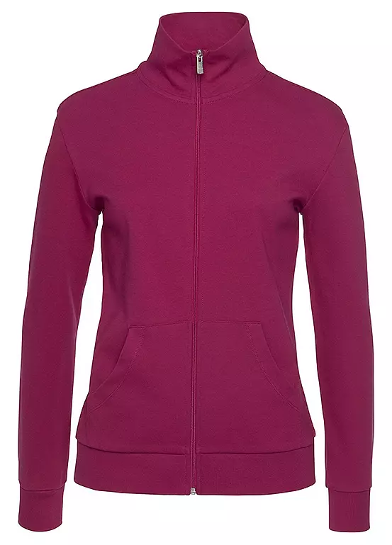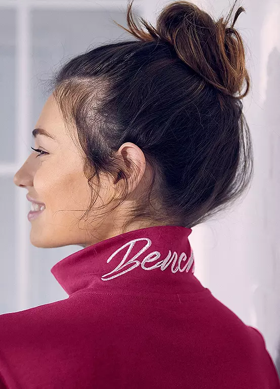 Sporty sweat jacket by Bench. Features a stand-up collar with embroidered logo lettering, full zip fastening and practical side pockets. Made form pure cotton. Brand logo on the stand-up collar. Full zip. Practical pockets. Brand logo on the stand-up collar. Full zip.