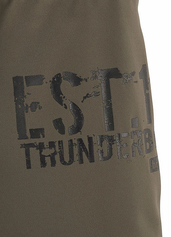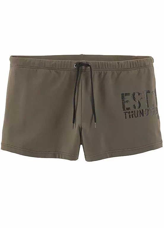Cool looking swim shorts that feature stylish print at the side, along with front lining and outer cord.