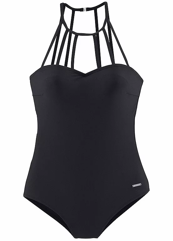 In a stylish look and in a solid colour, this swimsuit has integrated soft cups and underbust rubber, and ties at the nape.