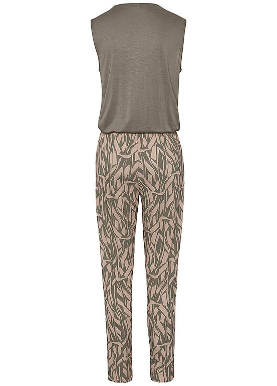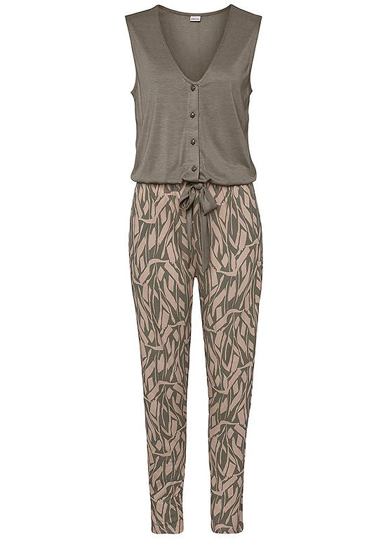 An adorable jumpsuit from Buffalo featuring a single-coloured top part with a button placket and an all-over printed bottom part. Made of light viscose, it comes in a loose trouser shape with a tapered leg and an elasticated waist. V-neckline with a button placket. Plain top. Machine washable. Outer: 80% Polyamide, 20% Elastane. Lining & Padding: 100% Polyester.