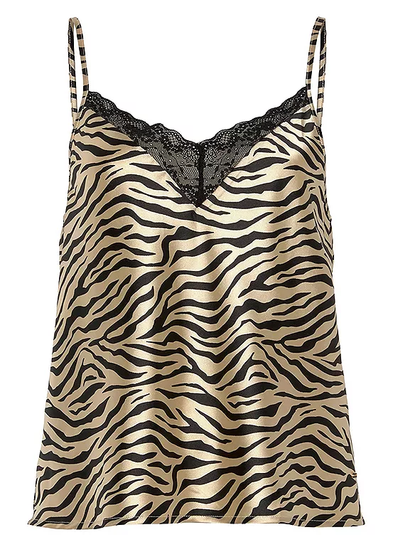 This top exudes pure elegance. Made of fine satin with lace detail on the V-neckline, which further enhances the elegant style while the filigree straps are adjustable and can be individually adjusted to your size. The light, elastic satin fabric not only ensures that the top falls beautifully, but also provides more comfort. Fine satin. Adjustable straps and lace details on the V-neckline.