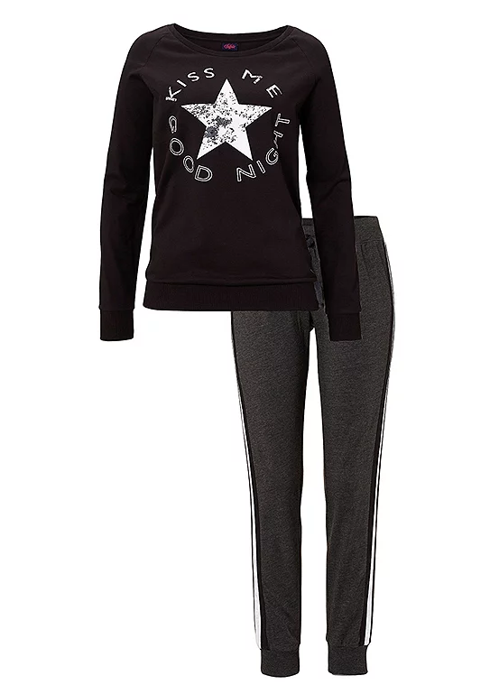 Keep cosy under the duvet in these loose-fit, comfortable pyjamas. A must-have for the winter months, with long sleeves, a round neckline and cool printed front. The jogging-style pants feature a rib-knit leg hem, as well as an elasticated waistband for maximum comfort.