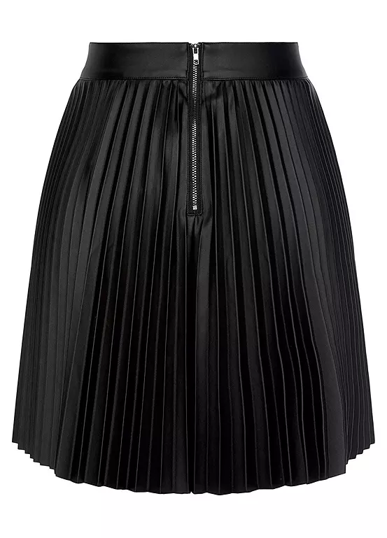 We all need a great pleated skirt for such occasions and this one fits the bill. The beautifully swinging pleats make it stand out. Smooth faux leather gives this women’s skirt an extra stylish look. With its smooth material, the waistband forms a great contrast to the beautifully draping folds. The zip on the back ensures a perfect fit.