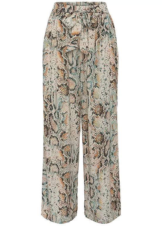 Comfortable, wide-cut slip-on trousers with an all-over snake effect print. Designed with a drawstring waist with tie and handy side pockets. Every pant is unique. Snake print. Side pockets. Machine washable. 100% Viscose.