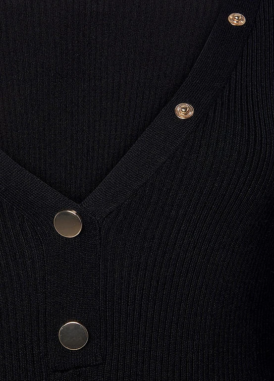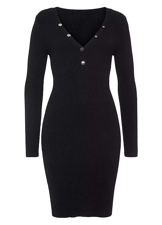 Buffalo’s V-Neck Knitted Party Dress is the perfect choice for a night out! With a deep V-neckline, decorative buttons on the neckline, and long sleeves, this close fitting knitted dress is sure to turn heads. The super soft ribbed knit fabric will keep you looking stylish and feeling comfy all night long! Decorative buttons on the neckline. Long sleeve. Soft ribbed knit.