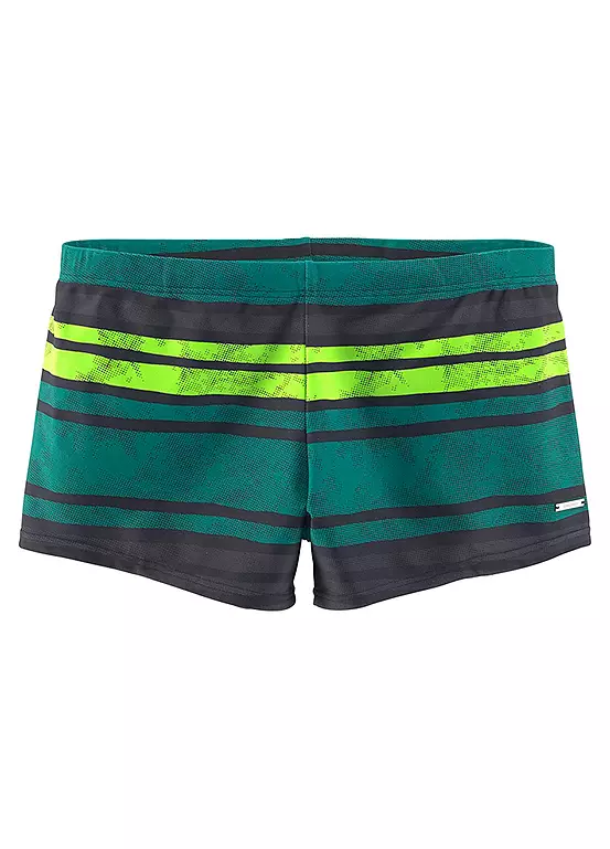 Boxer style swimming trunks in a fashionable stripe design. Featuring a light lining to the front, and hidden drawstring fastening. Perfect for surfing, swimming or simply chilling on the beach.
