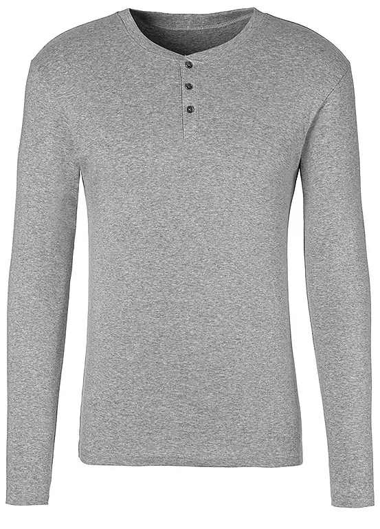 A long sleeve cotton Henley top by H.I.S in comfortable fine rib fabric with an elaborate button placket.