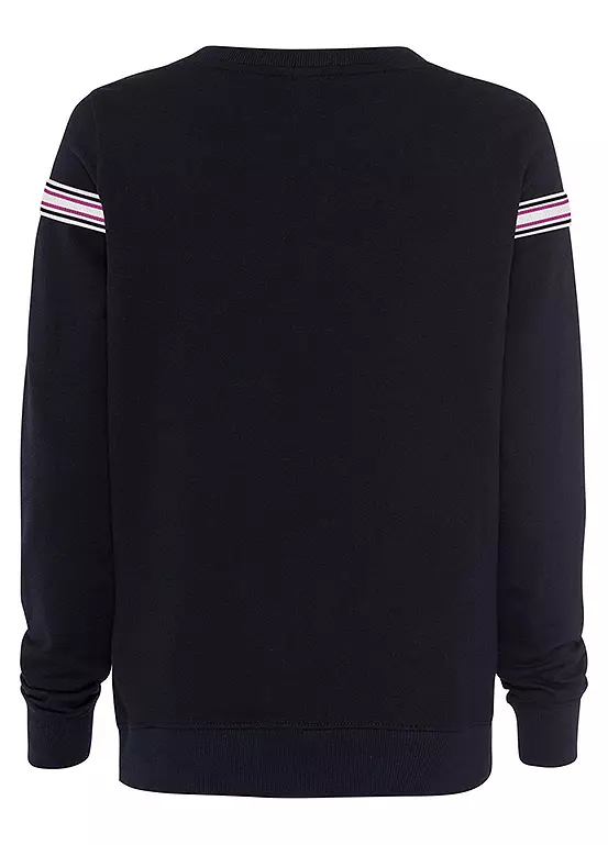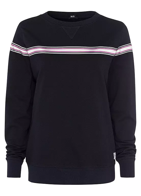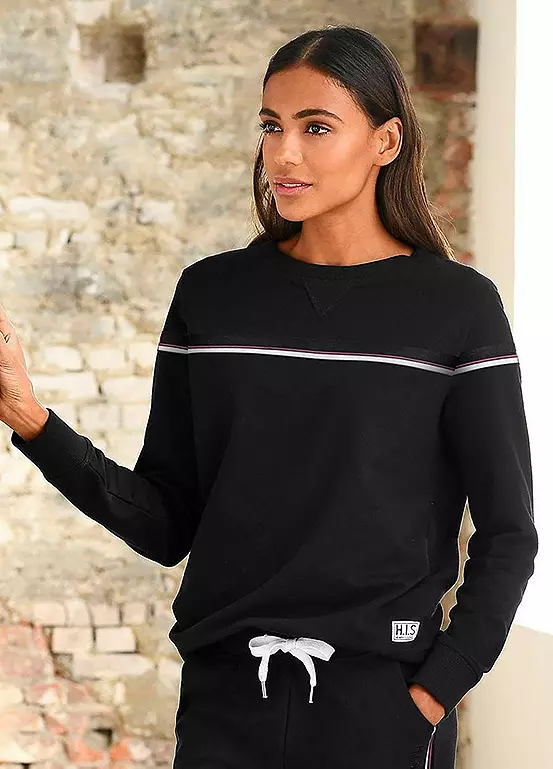Perfect for sports or leisurewear, this stylish sweatshirt features a contrasting tape across the chest for a sporty look.