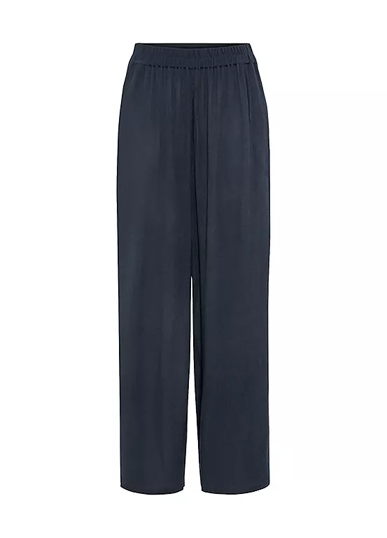 Palazzo trousers made of créped viscose with a soft elasticated waistband and side pockets. Light summer trousers with a wide leg. Comfortable elasticated waistband. Side pockets. Machine washable. 100% Viscose.