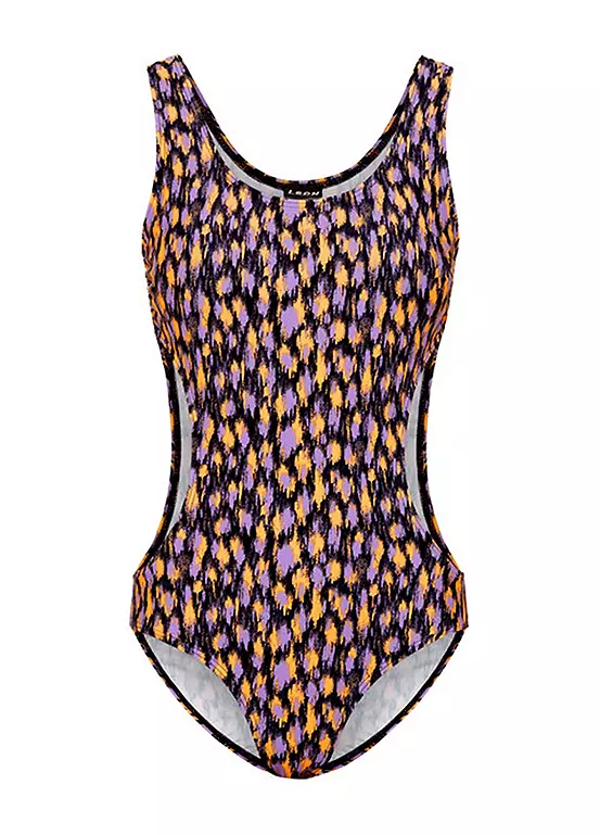 Sophisticated swimsuit with side cut-outs. Trendy all-over print, high leg, flat back. Easy-care material with recycled polyamide. Cut out design. Removable soft cups.