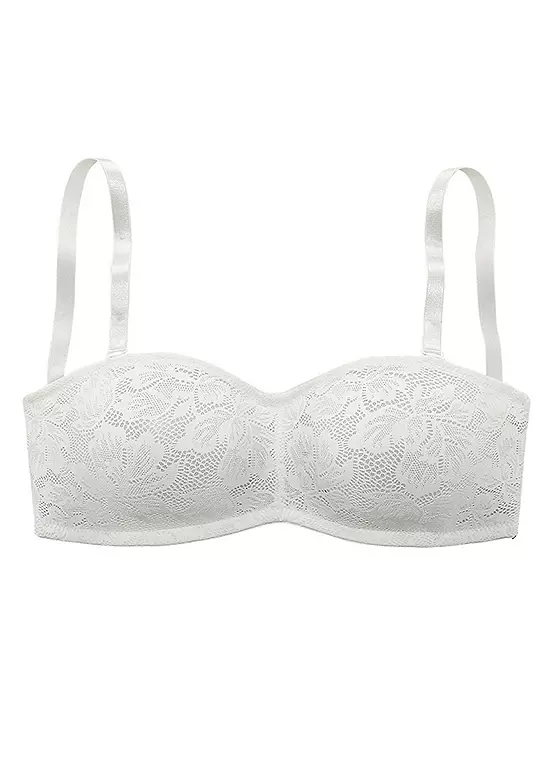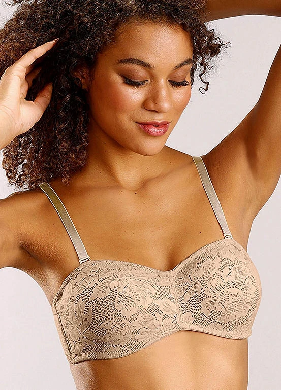 This bra is a real eye-catcher and has seamless preformed cups that are covered with floral jacquard lace for a romantic look. This bra can be worn one of three ways; normal, criss-crossed at the back or strapless, plus the straps have a silicone strip at the edge for a secure hold. The straps and the back closure can also be adjusted.