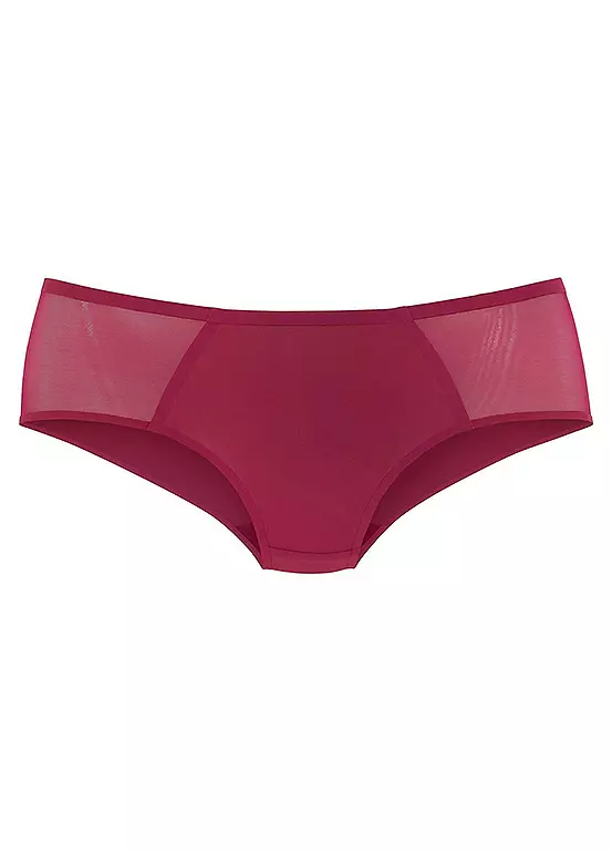 These hipster briefs are super fashionable and totally comfortable at the same time with an elastic waistband. The side inserts made of transparent mesh material give the briefs a cool touch and also make them look great in terms of design. An opaque lining in the middle at the back and front can guarantee perfect comfort in combination with an integrated cotton gusset.