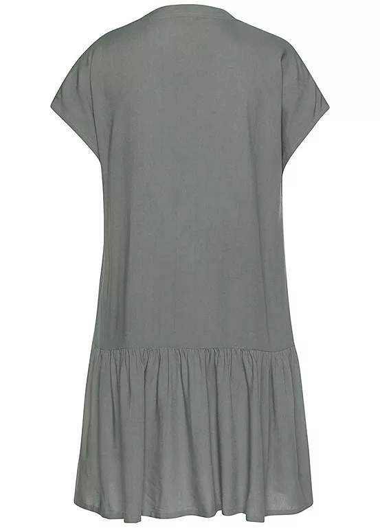 Fashionable dress that is the perfect summer companion. With a beautiful notch style neckline and short sleeves, that is enhanced with a wide flounce hem. Length approx. 88 cm (34½ in)