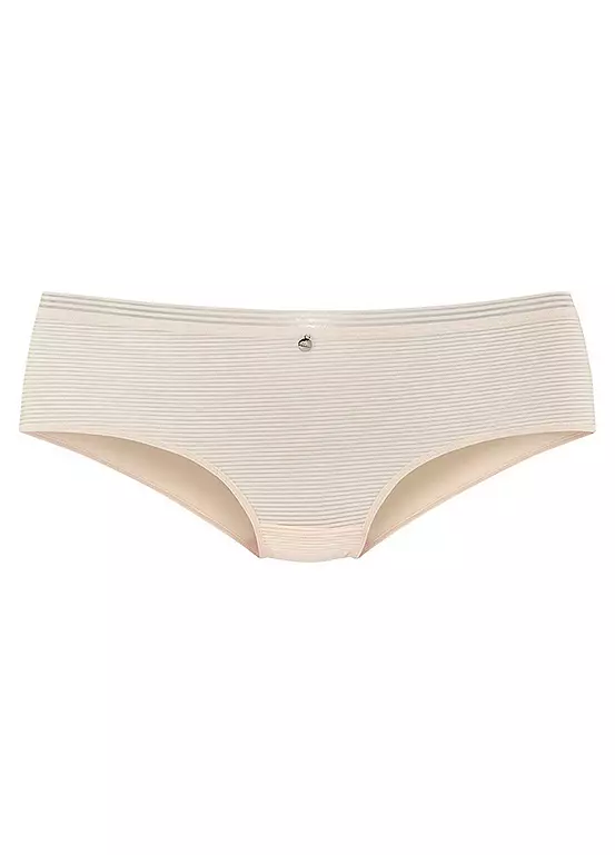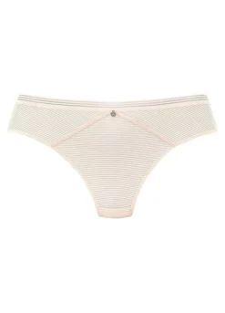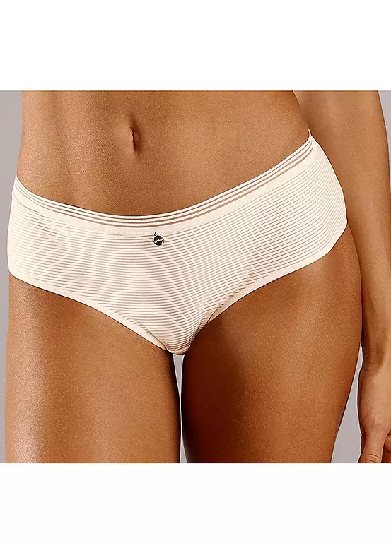 Fashionable design, optimum comfort and a cool touch are skilfully combined for these briefs. The soft material nestles comfortably against the figure and, thanks to the higher waistband, the elastic leg cut-outs and the integrated cotton gusset ensure a great fit and perfect wearing comfort. A fashionable metal accessory in the centre front and the subtle striped look thanks to the fine soft mesh complete the look. With integrated cotton gusset.