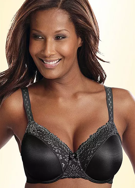 Elegant minimiser underwired bra featuring beautiful embroidered lace with soft straps and seamless pre-formed cups. Designed to make the bust look a cup size smaller.