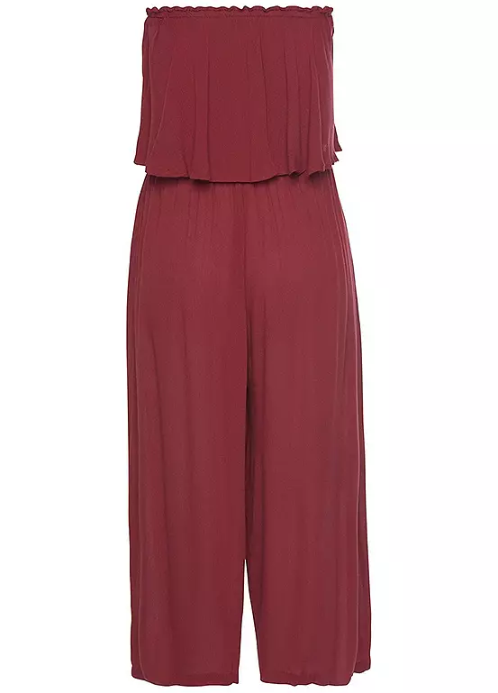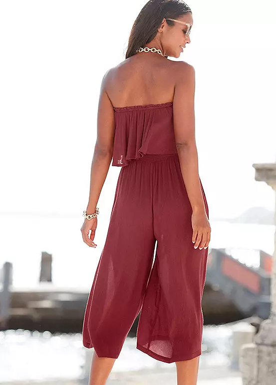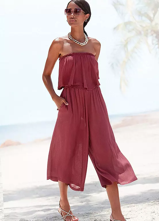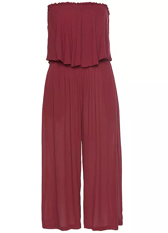 Elegant bandeau overalls by Vivance with a smocked top with fashionable flounces. Side pockets. Wide trousers with a 7/8 length. Made of soft viscose quality. Smocked top. Wide trousers with a 7/8 length. Off-the-shoulder. Machine washable. 100% Viscose.