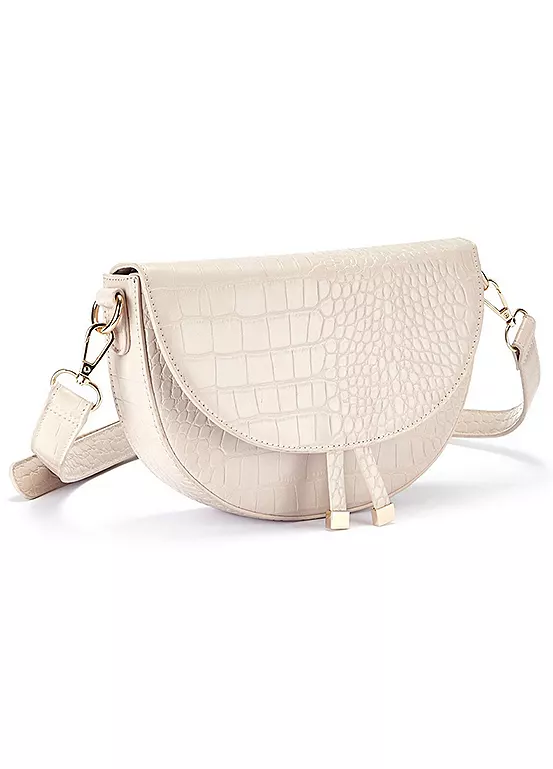 Shoulder bag in a classic croc look. Made of vegan faux leather. Dimensions approx. 16H x 24W x 6D cm.