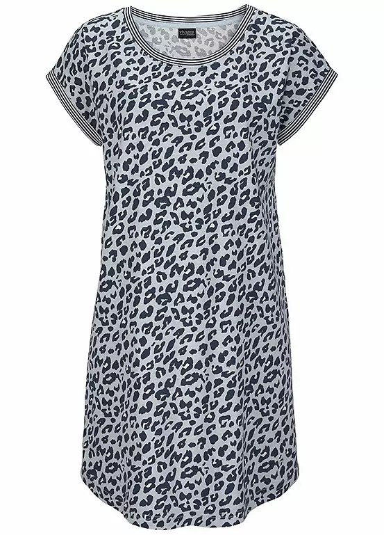 Nightshirt in a short shape, featuring an all over print, featuring contrast trim on rounded neckline and sleeve cuffs. Made from comfortable material.
