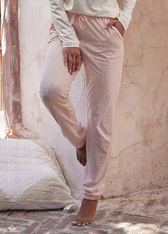 Cosy cotton mix pyjama bottoms with an elasticated waistband, front tie fastening and two side pockets.