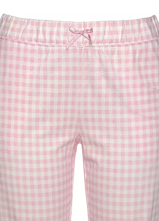 Classic pyjamas which feature a lapel collar and button placket on the top. The bottoms feature an elasticated waistband and side pockets. Finished with a decorative bow and a subtle all-over striped pattern. For restful nights, these pyjamas prove to be an indispensable must-have with style.