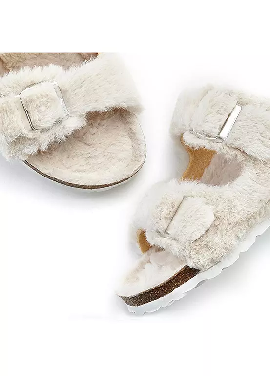 Cuddly mule slippers with faux fur and cork footbed by Vivance. Made in Spain. With a comfortable cork footbed. Upper: Synthetic, Lining: Synthetic, Insole: Synthetic, Sole: Synthetic.