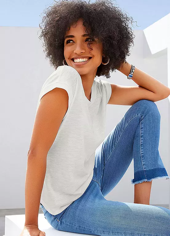 A double pack of casual t-shirts by Vivance with a wide ribbed neckline and cuffs. Made from comfortable soft cotton, they come in a slight marl look.