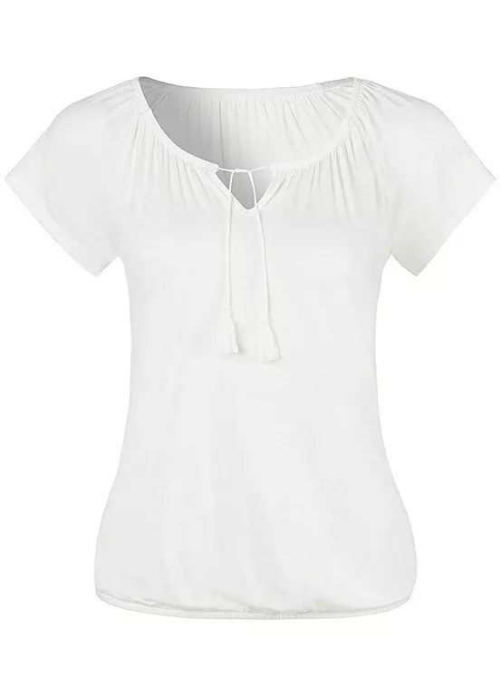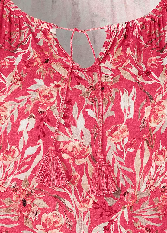 A great value double pack of short sleeve t-shirts from Vivance, one in a floral design and one plain. There’s a figure flattering elasticated hem, plus stylish tassel detail at the neckline. The soft, stretchy and flowing viscose material is comfortable on the skin.