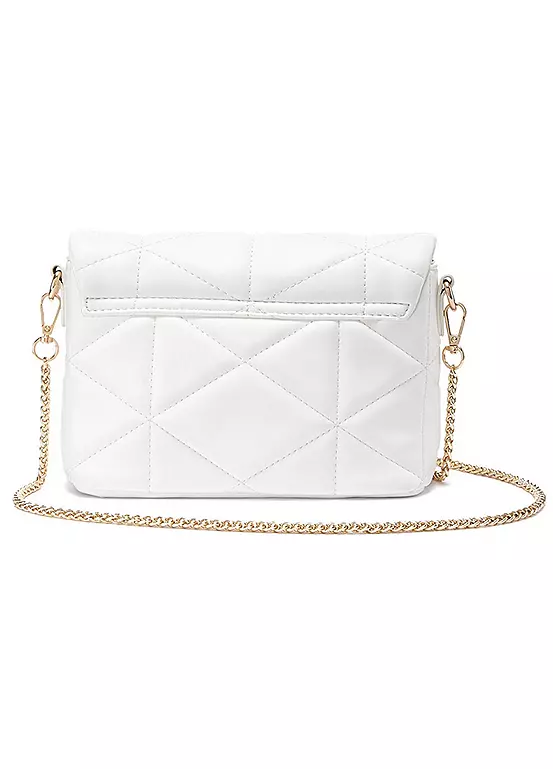 A stylish shoulder bag in a quilted design with a chain strap, a single button fastening and an inner zipped pocket. Perfect for on the go. Size approx. 14H x 21W x 8D cm.